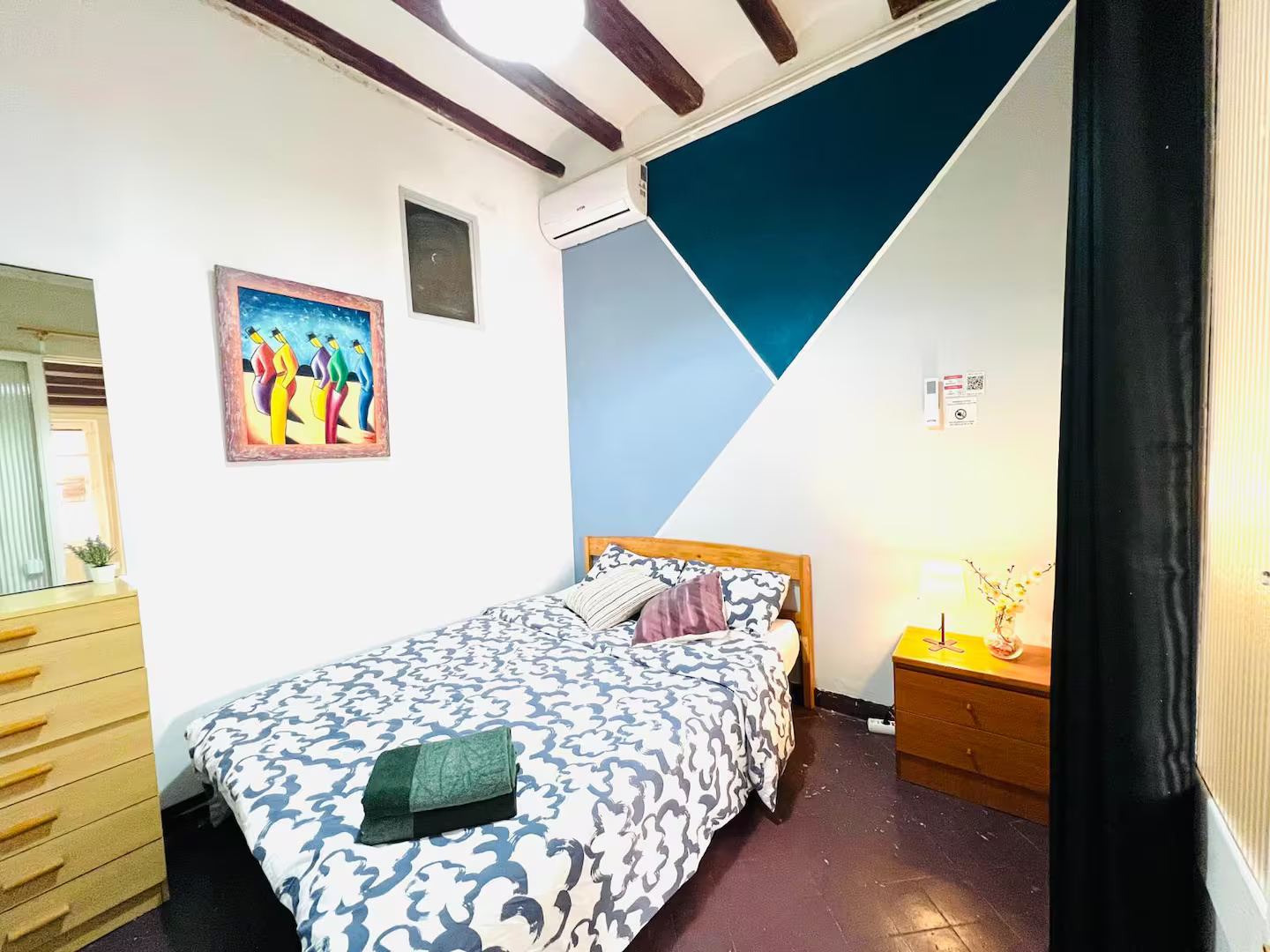 Séjournez au cœur de Barcelone dans cette chambre privée située dans une maison d'hôtes. Confortable et bien équipée, elle accueille deux voyageurs avec un lit douillet et un accès à une salle de bain partagée. Profitez du wifi, de la climatisation et d’une cuisine équipée pour préparer vos repas.